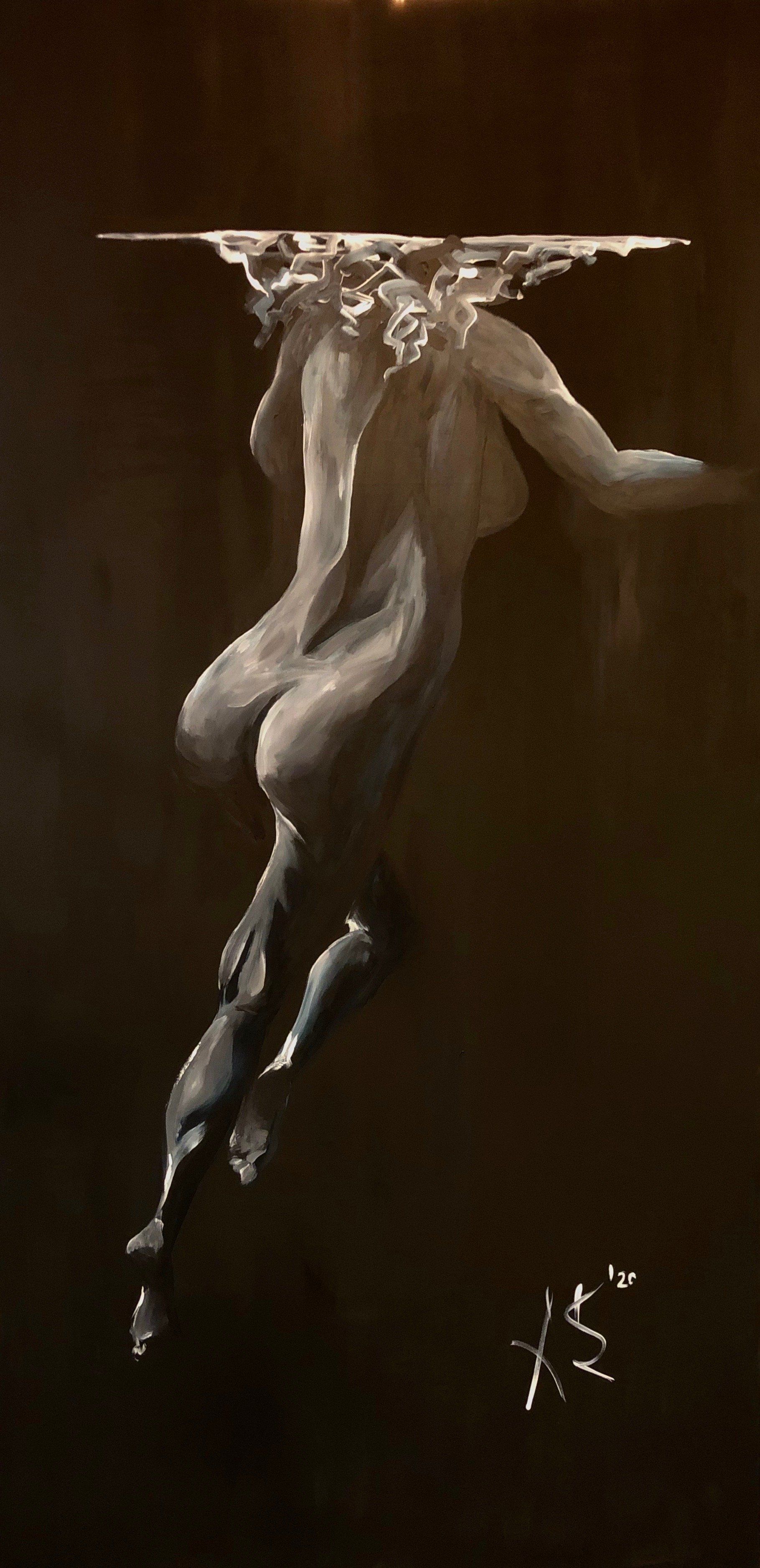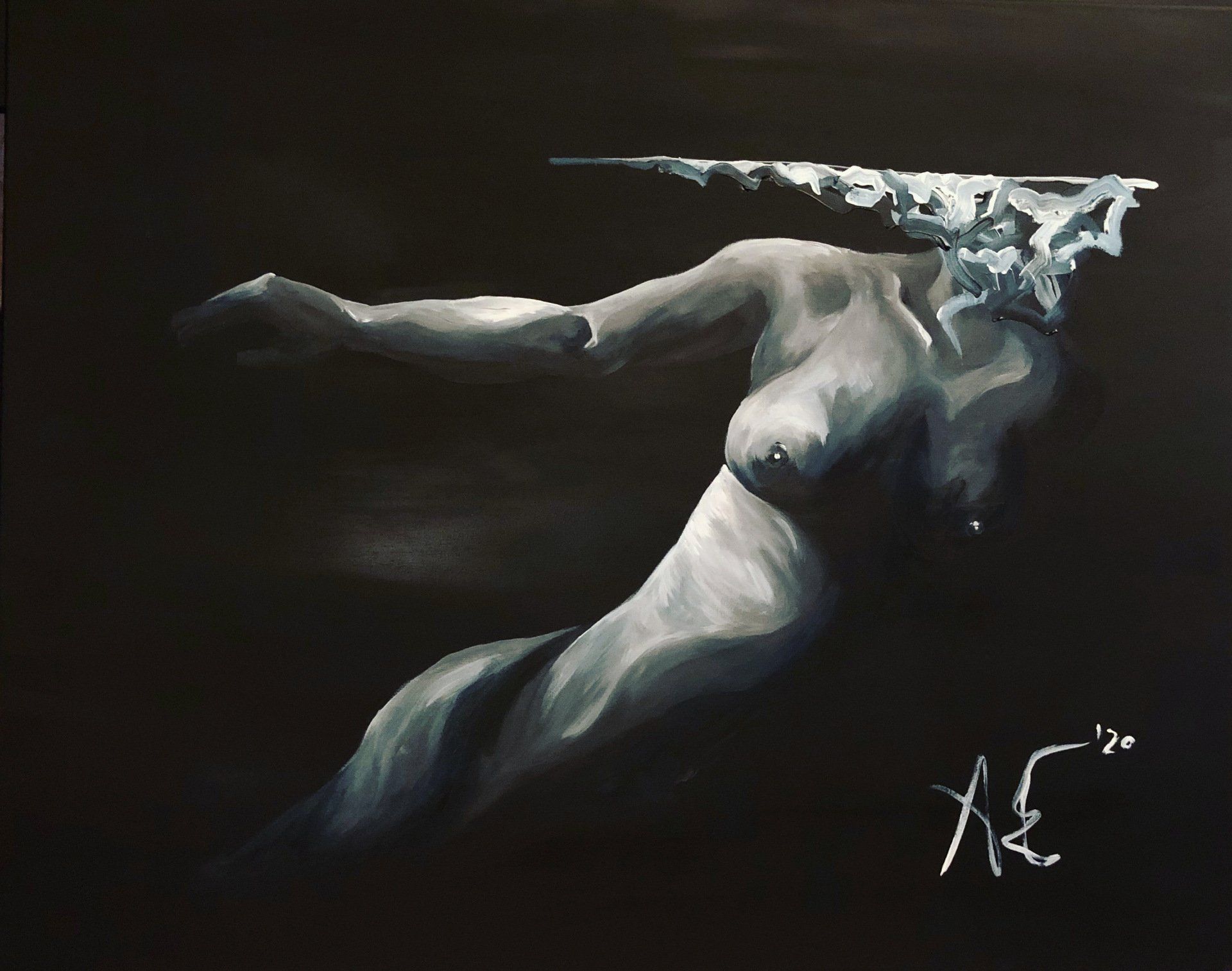 Wohingegen NAKED NIGHT SWIM zwar auch eine Aktserie ist, doch vom Verlorensein spricht. Kopflos, schutzlos, farblos, nackt.