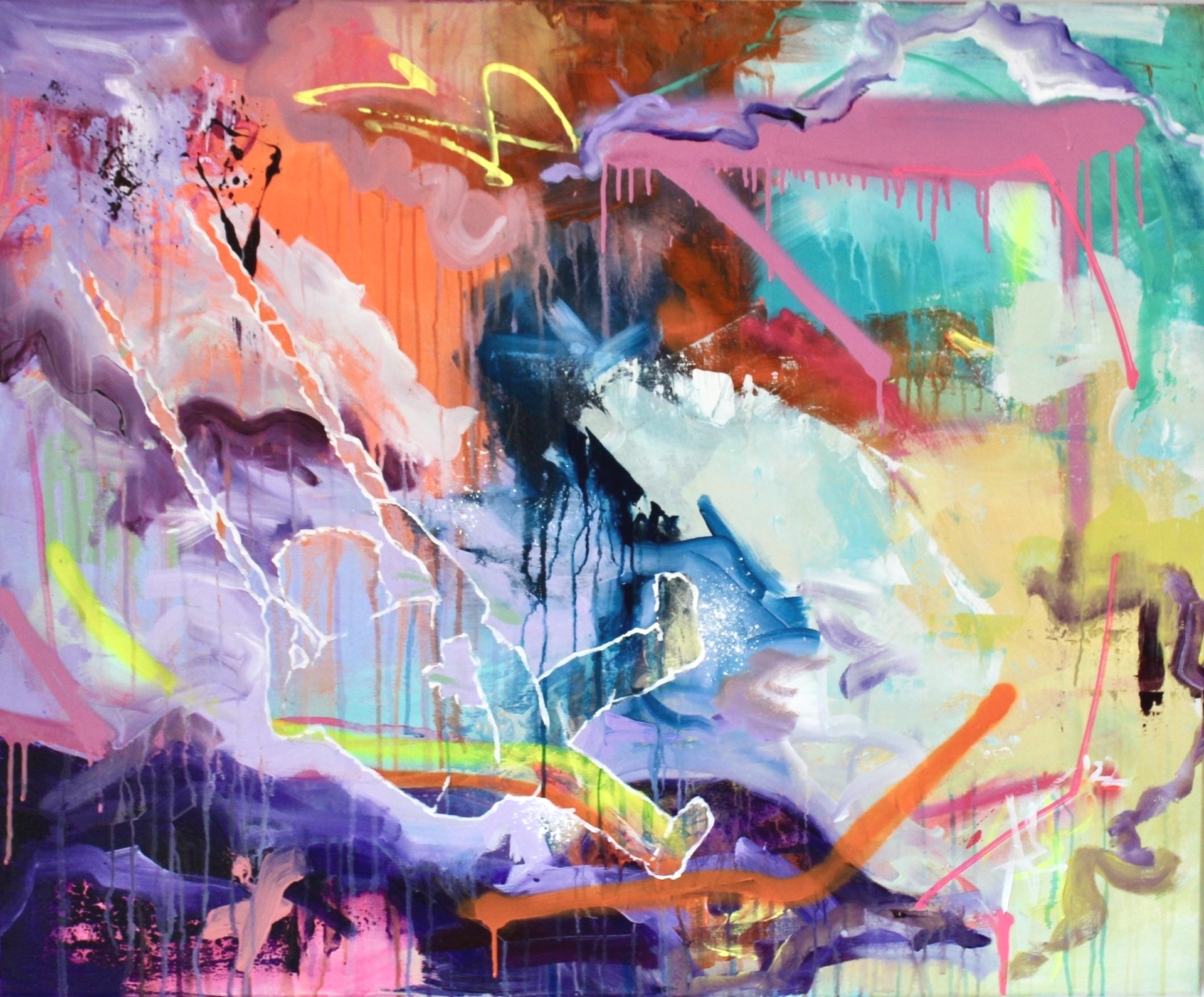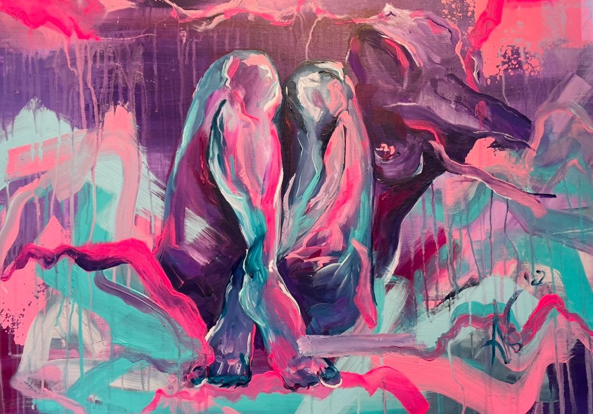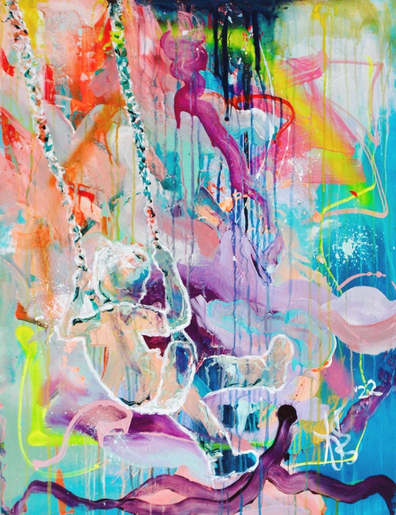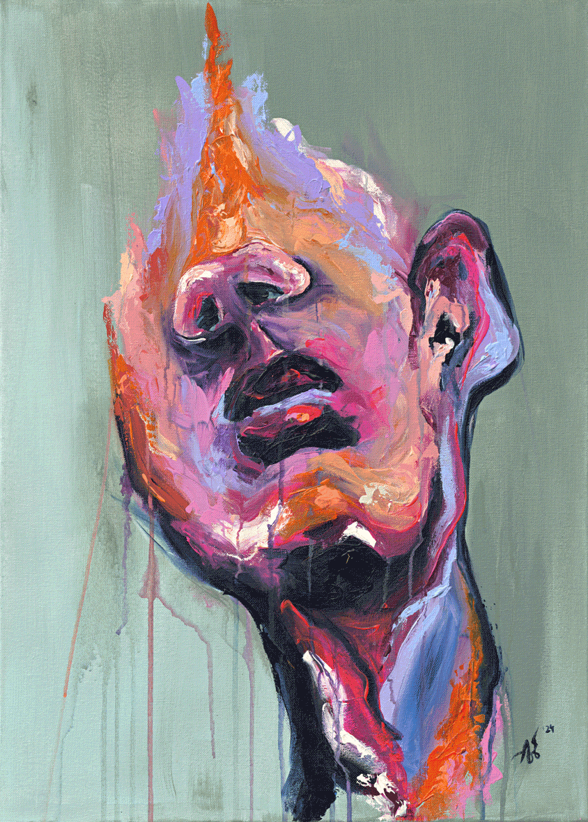 Ich arbeite vorwiegend mit Acrylfarbe, Graffitispray und Leinwand, ergänzt durch Pastellkreide. Schichten, Überlagerungen und das Zulassen des Ungeplanten sind Teil meines Prozesses.