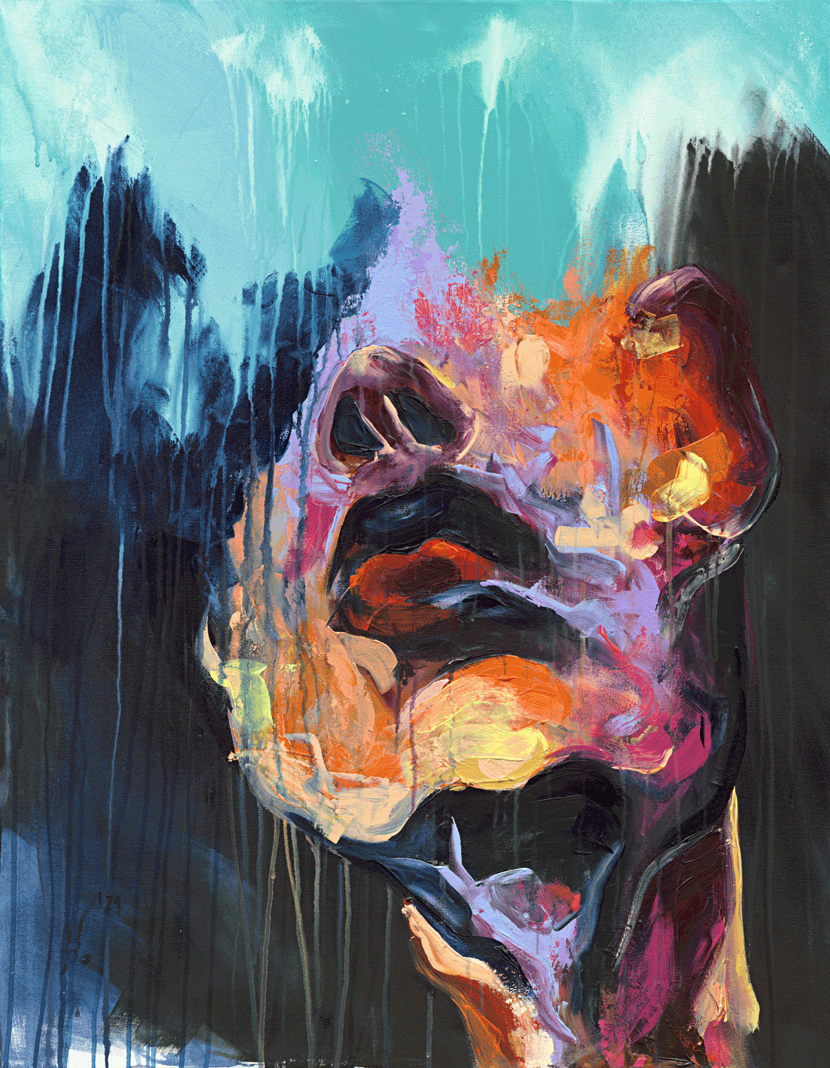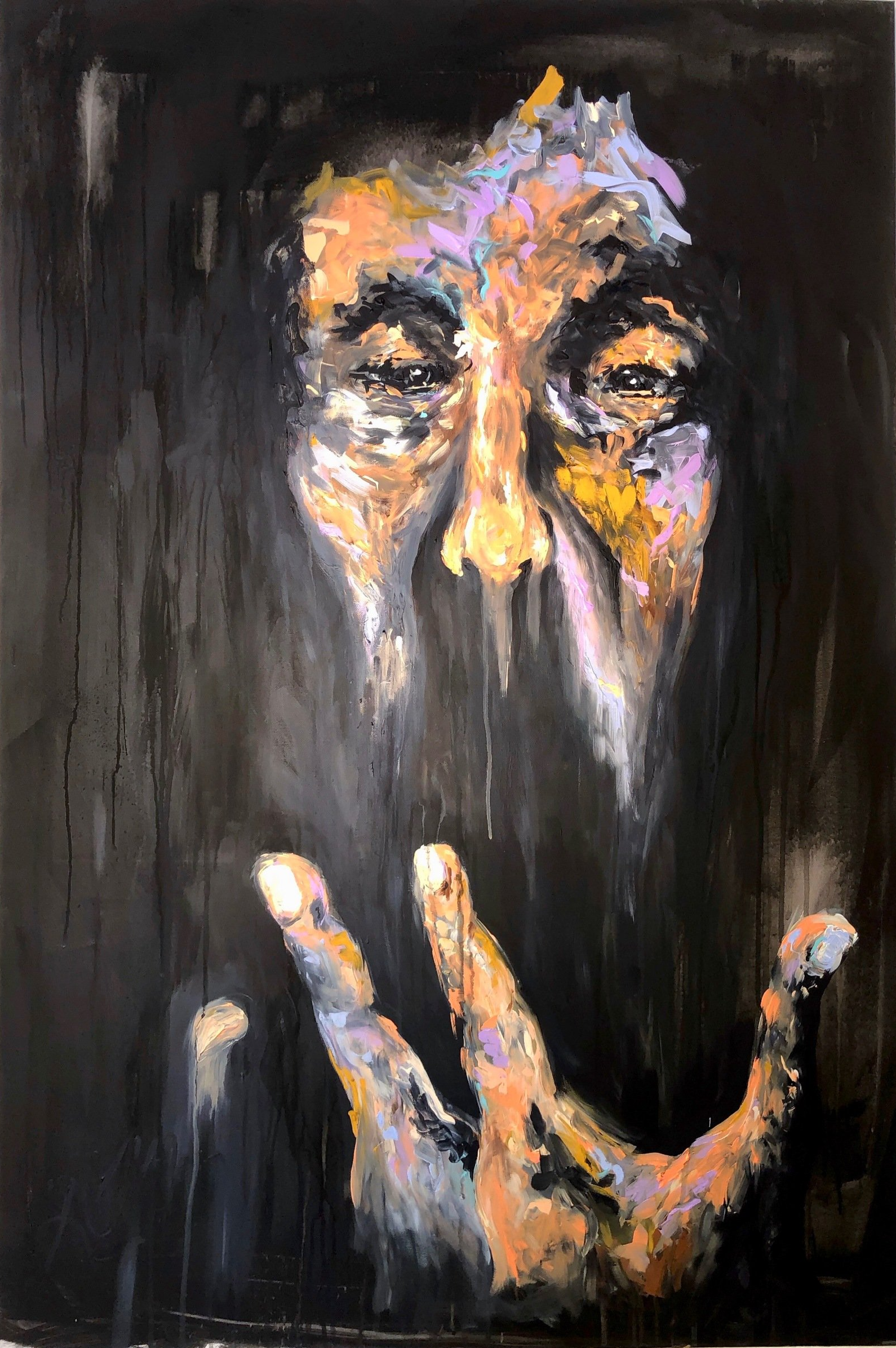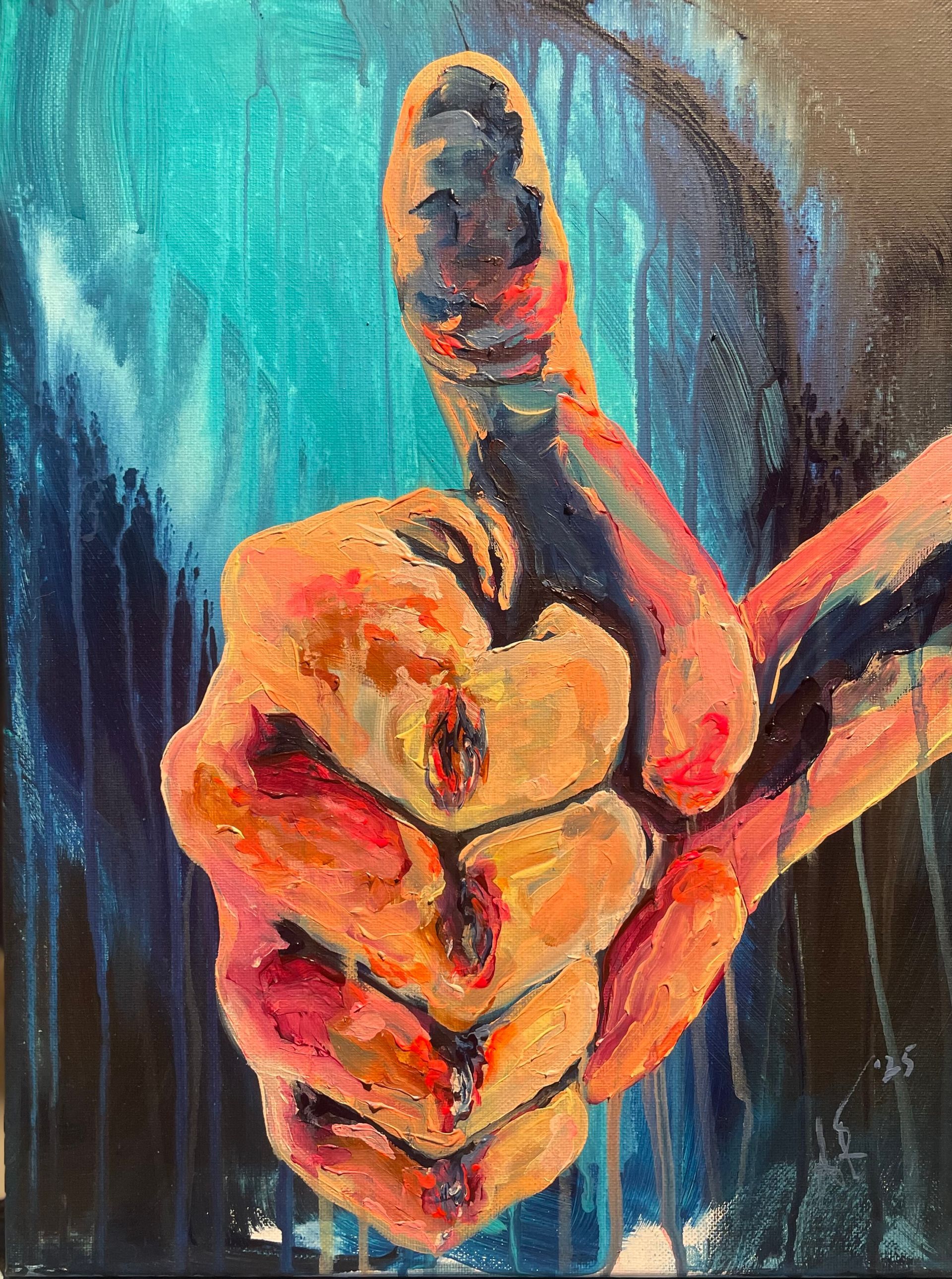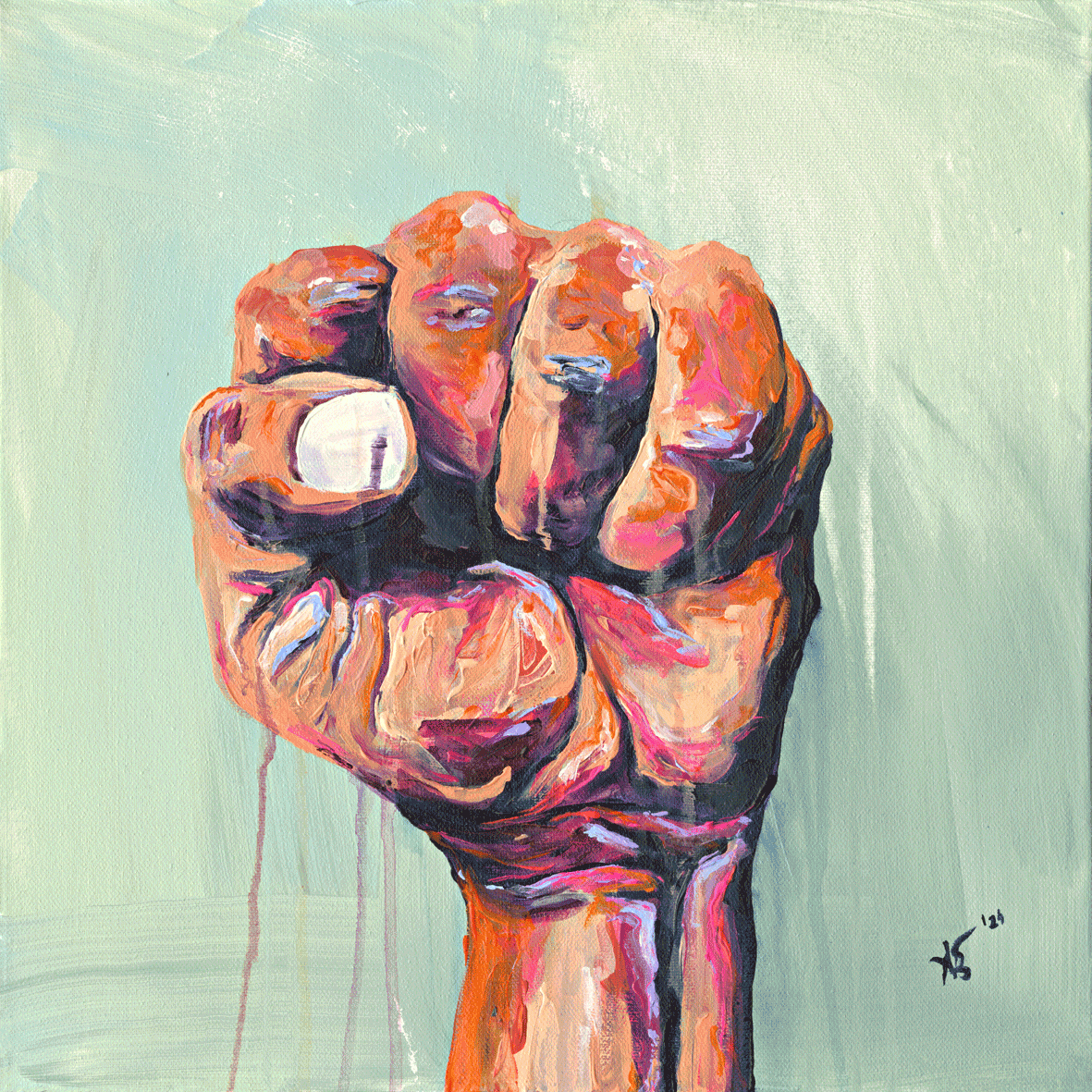 Ich arbeite vorwiegend mit Acrylfarbe, Graffitispray und Leinwand, ergänzt durch Pastellkreide. Schichten, Überlagerungen und das Zulassen des Ungeplanten sind Teil meines Prozesses.